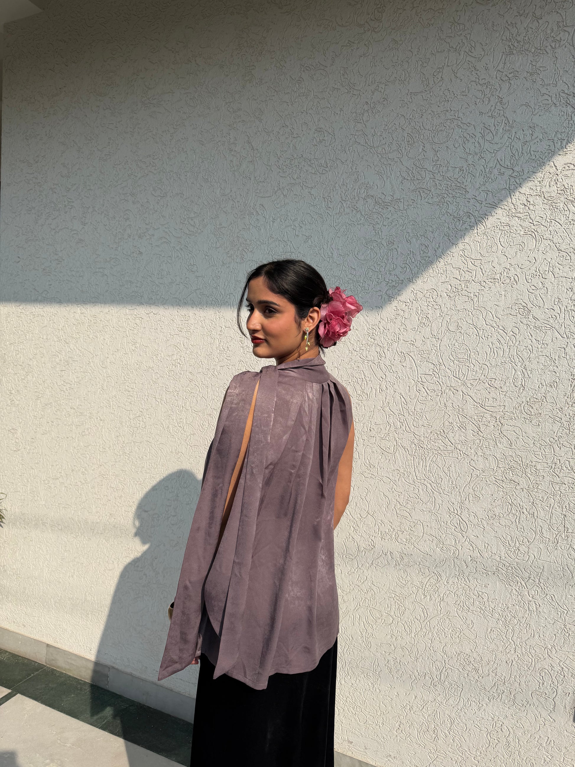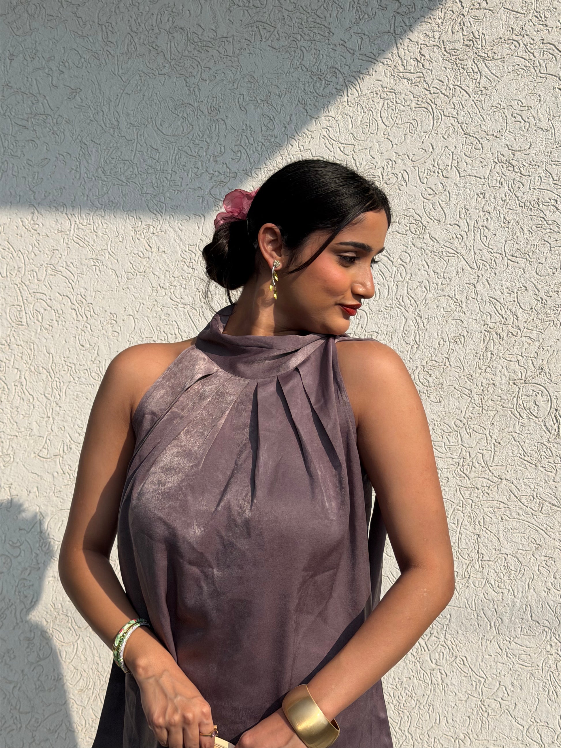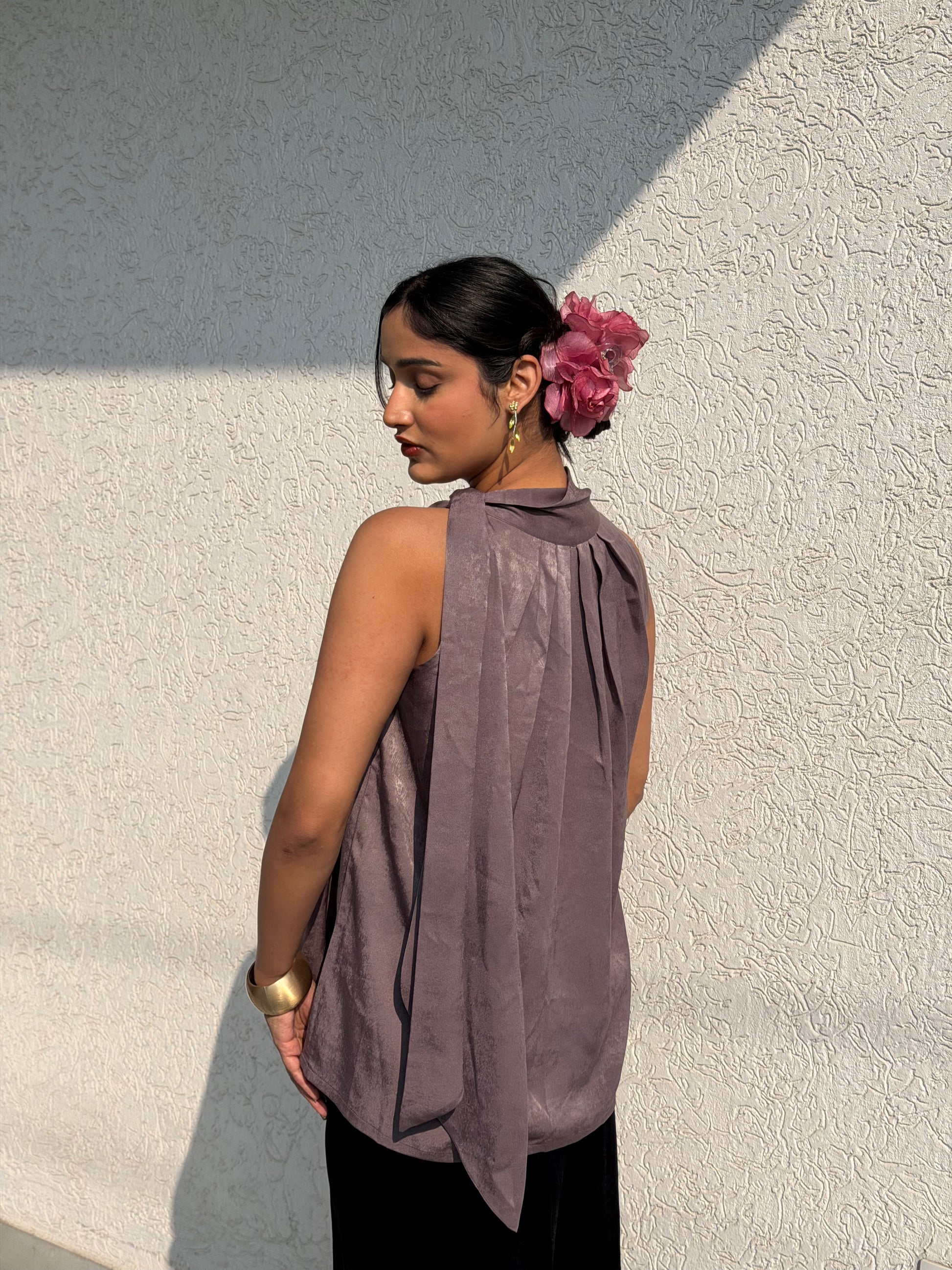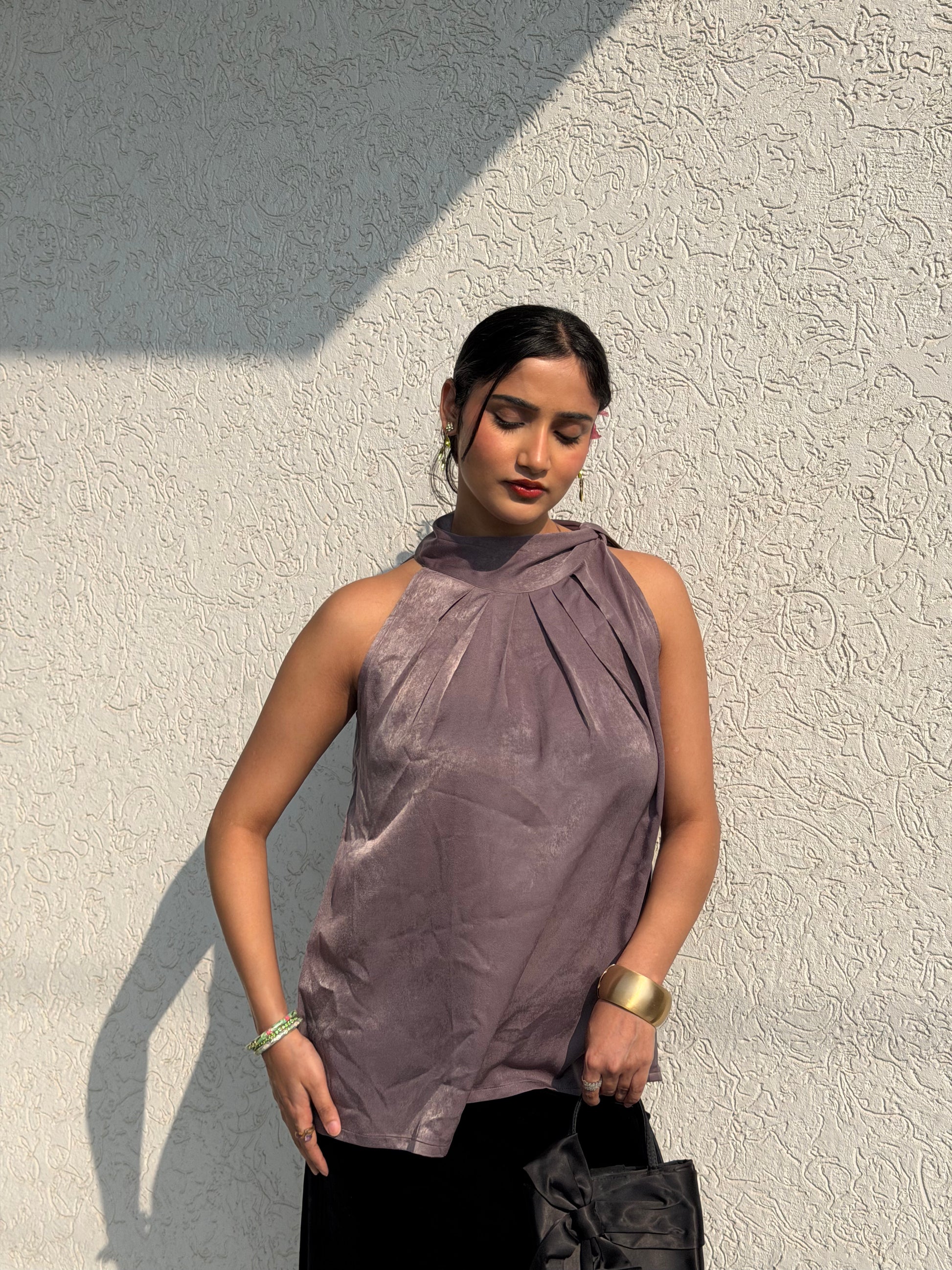 Halterneck Tie Top. Solft pleats at the neck timeless and sophesticated.